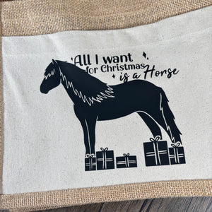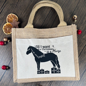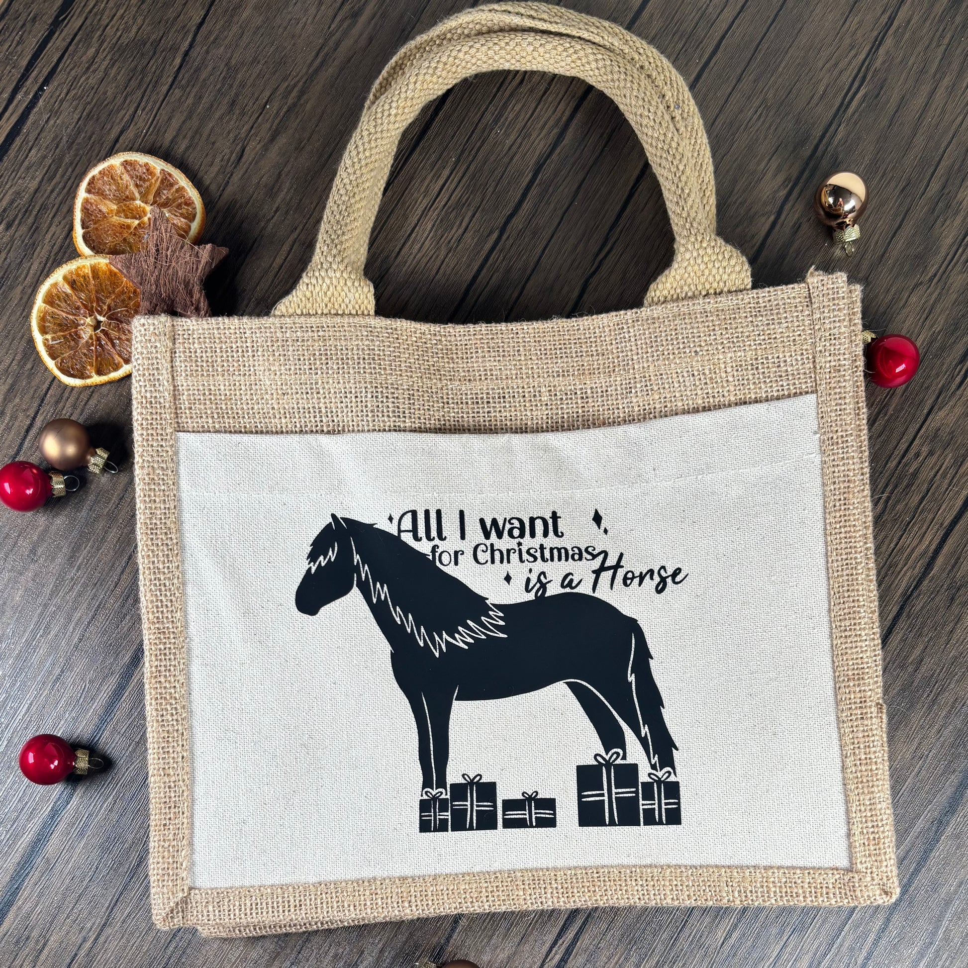Tolle Jute Tasche im weihnachtlichen Look, perfekt um dein Geschenk noch extravagant zu verpacken.