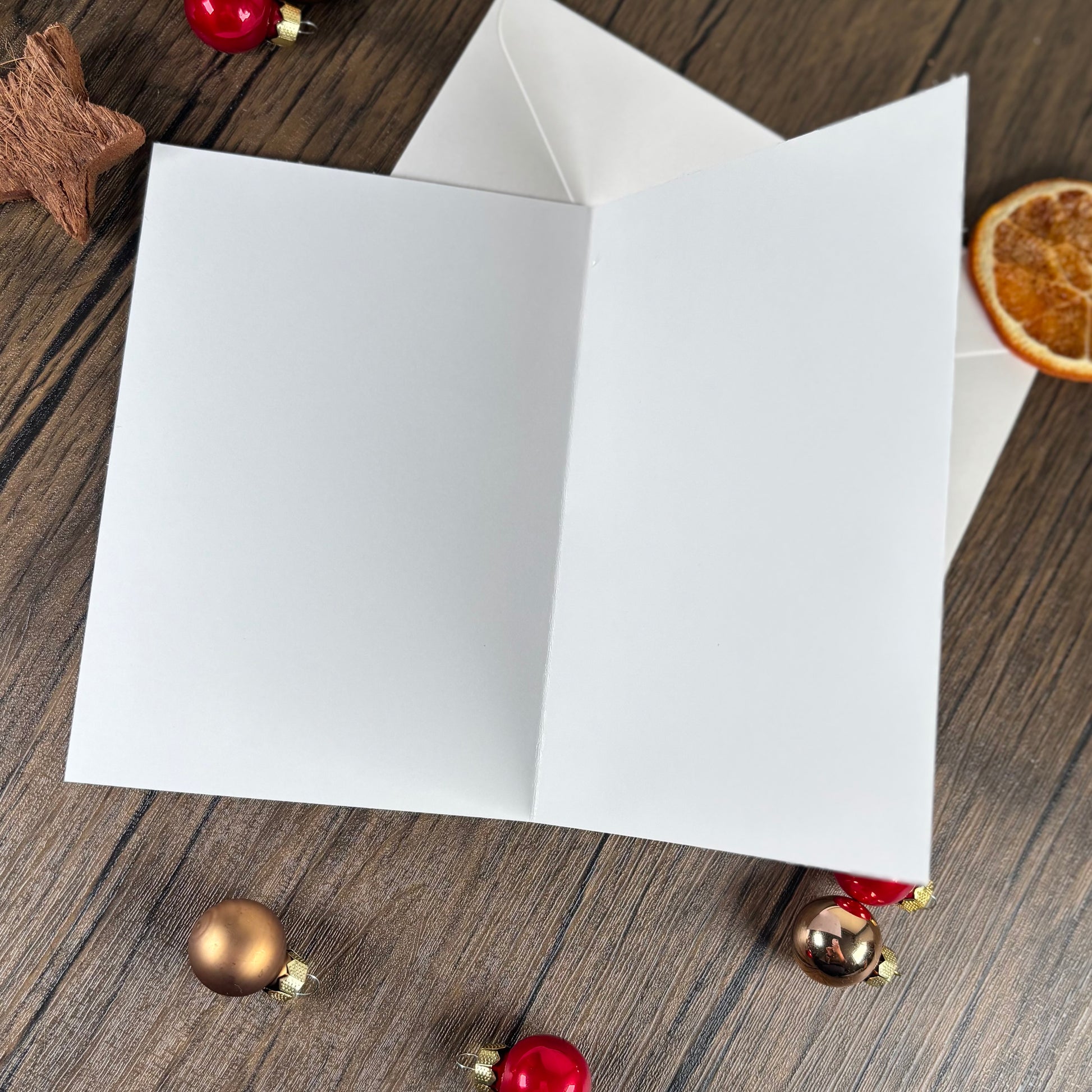 Satin Weihnachtskarte mit weißer Innenseite zum beschreiben (Kugelschreiber) und weißem Umschlag.